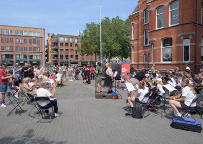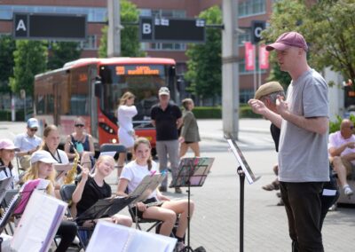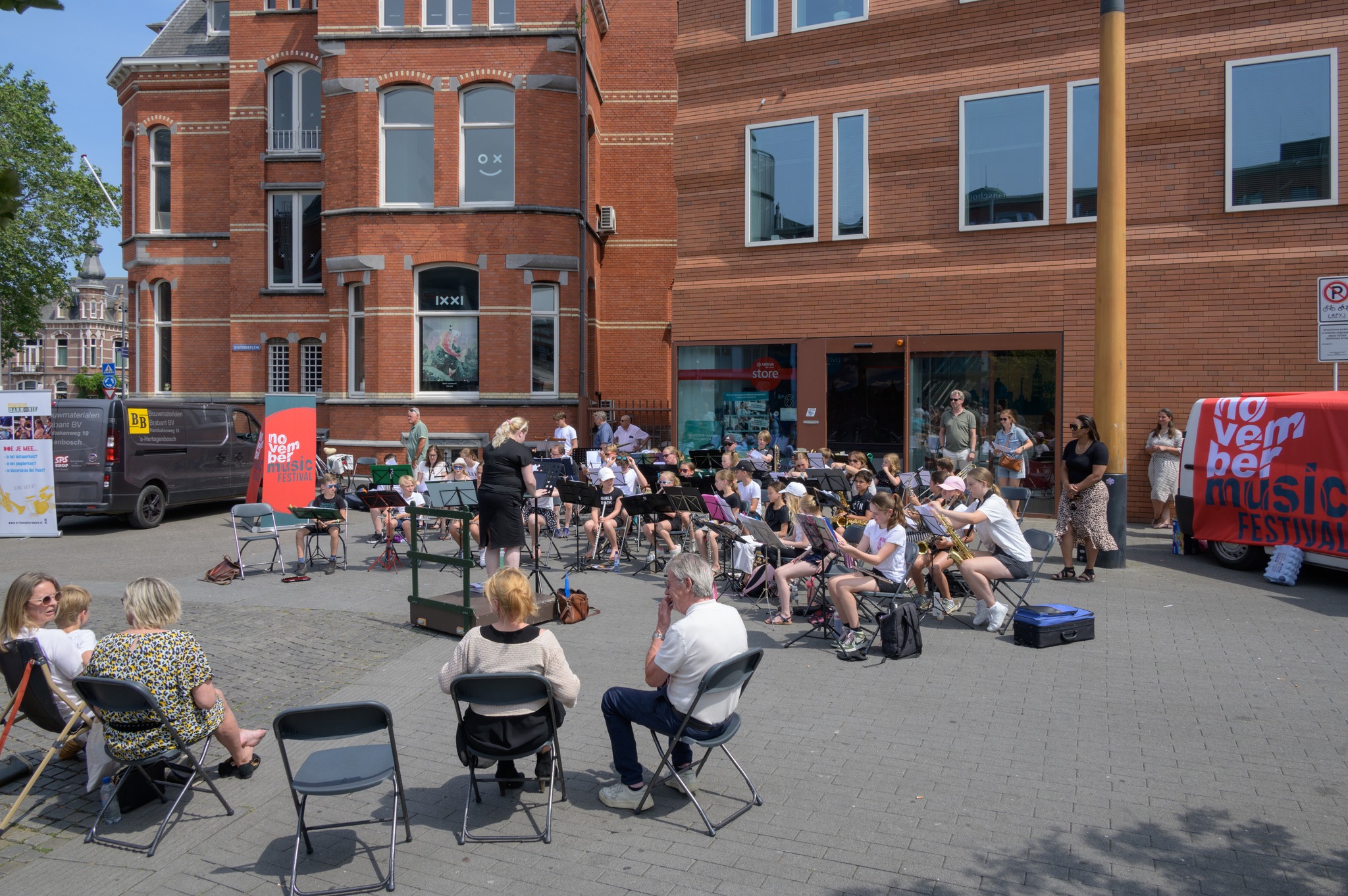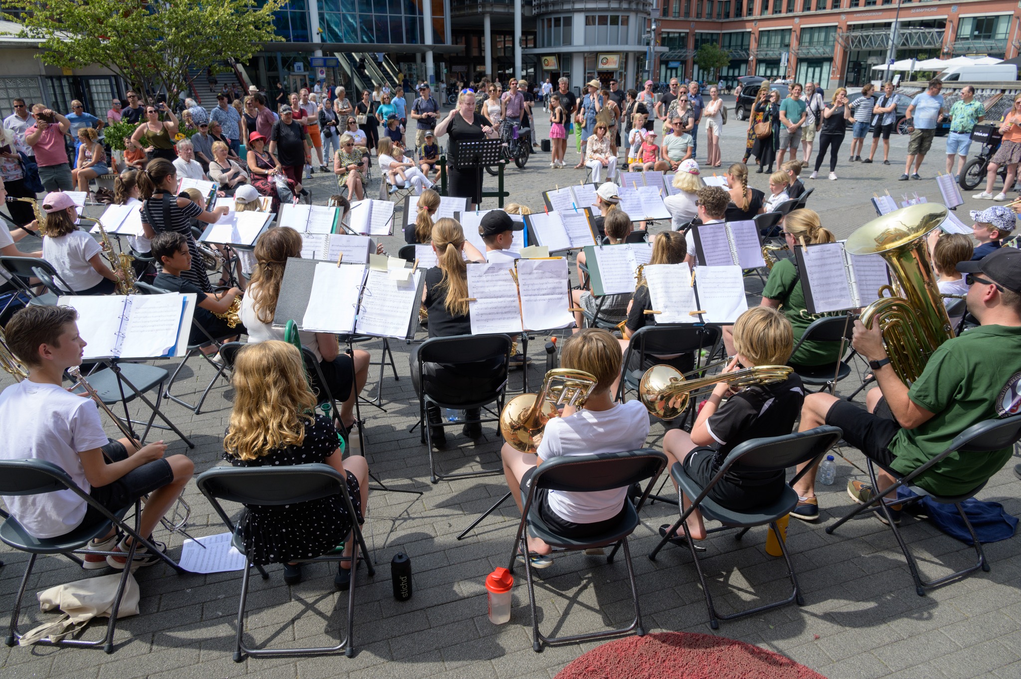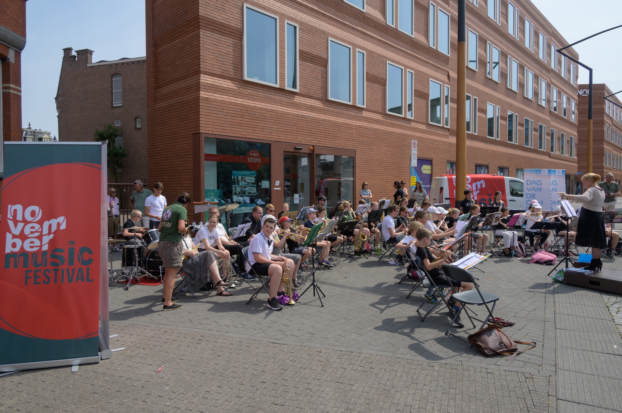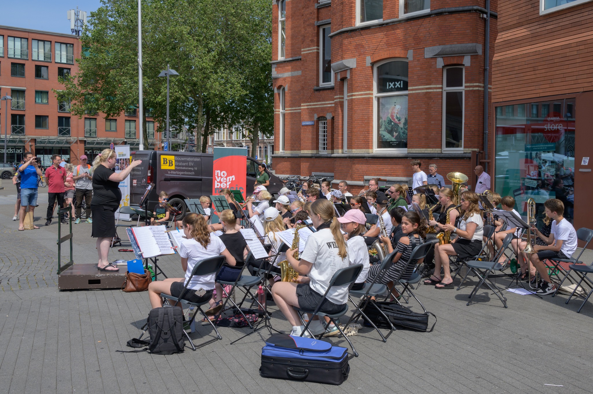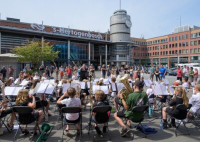 DEN BOSCH | Zaterdag 17 juni speelden de jeugdafdelingen van de Orthense Harmonie nieuw werk van Stadscomponist Bart van Dongen op het stationsplein van ’s-Hertogenbosch! Dit optreden is een initiatief van festival November Music in Den Bosch.