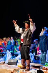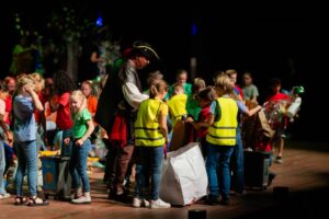 Op 9 Juni 2024 heeft de Orthense Harmonie met de gehele opleidingsafdeling (instaporkest/opleidingsorkest en de leerlingen die nog maar net muziek maken) de voorstelling De Klimaatpiraat uitgevoerd in het Theater aan de Parade. De blazersklas en de ritmeklas van Het Palet deden ook mee samen met een dertigtal zangertjes van de groepen 5 en 6 en met de zangertjes van Kinderkoor De Fermaatjes. Tot slot kregen de kinderen van twee Bossche Brede Scholen de kans om mee te doen na een programma van tien weken waarin ze de eerste tonen van een instrument leerden bespelen. Naast repetities in de eigen groep waren er drie gezamenlijke repetities. In totaal hebben 180 deelnemers aan dit project meegedaan en zaten er op 9 juni 165 deelnemers op het podium tijdens de voorstelling. Zij waren een hele dag in het theater om nog extra te repeteren en alles goed door te nemen volgens plan. Het was mooi te zien hoe goed dit allemaal ging en hoe fijn en gezellig iedereen het met elkaar had.
