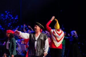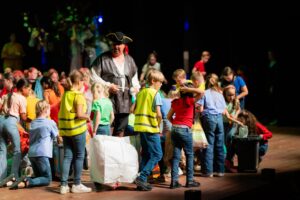 Het mooie van het project De Klimaatpiraat is dat de muziek geschreven is voor zowel de meer gevorderde leerlingen als de beginnende leerlingen. Zo kunnen ze samen tot een heel mooi resultaat komen. De muziek is geschreven door Ivo Kouwenhoven en de tekst is van Suzanne Brok. Dat het verhaal over het Klimaat gaat, was boeiend voor de kinderen; het is een thema dat leeft. Een statiegeldactie werd op touw gezet door een van de jeugdleden zodat iedereen zijn of haar steentje kon bijdragen aan het afval verzamelen. Andere jeugdleden hebben nagedacht over de aankleding van het podium. In het eerste deel van de voorstelling heeft het opleidingsorkest een mooi muzikaal programma laten horen met onder andere The Avangers, Flemming en Skyfall. De jeugdleden hebben filmpjes gemaakt welke op groot scherm getoond werden tijdens de uitvoering. Hans Tervoort heeft voor de pauze als presentator de boel op luchtige wijze gepresenteerd en na de pauze was hij de Klimaatpiraat. Het gehele project en de voorstelling waren niet mogelijk geweest zonder ons fantastische team van vrijwilligers, dirigenten, docenten, onze diverse partners en onze sponsoren.